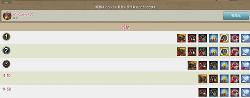 ゴールドの獲得が下位まで広がっている。以前は3位くらいまでしか金貨を得られなった気がするが、今回からは11位から50位までが獲得できる。ワールドによりけりな部分はあるが50位となれば、参加するだけで入手できる可能性もある順位。同盟全員に配布されるイベントでの報酬増加は、総合戦力では劣っていてもアクティブユーザーが多い同盟では、力の源泉となるゴールドが累積的に増えていくわけだ。数人でも同盟を組む新しい同盟が、ひたすらイベントに取り組むことで力を付けやすくなったといえるかもしれない。